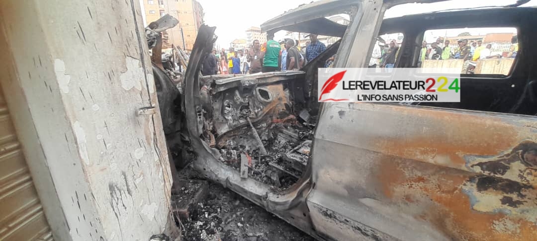 Au micro de notre reporter, Adama Doumbouya, gérant de la station, relate les faits. ‘’Les militaires présents sur les lieux m’ont expliqué que le véhicule stationné derrière moi, en provenance d’Enco 5, roulait à vive allure. Le conducteur aurait perdu le contrôle avant de percuter un poteau, ce qui a provoqué un incendie. Les véhicules stationnés à proximité ont également été touchés par les flammes.